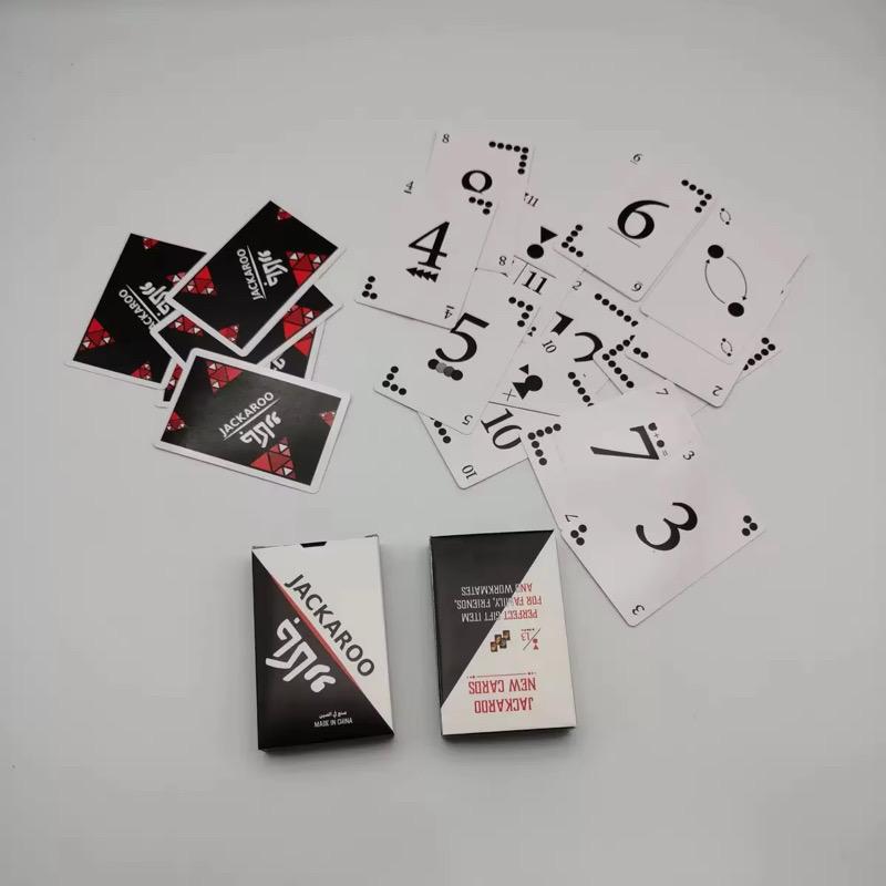 Jackaroo is a 4-player game based on partnership. Each set of opposing players forms a team. The game uses a standard deck of 52 cards without jokers and includes 16 playing pieces (4 pieces per player), each of a single color.