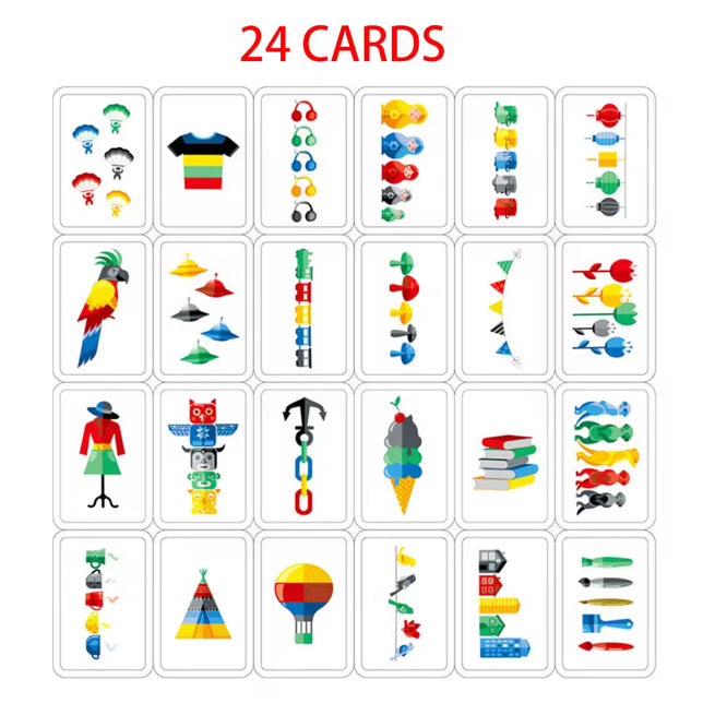 Flip a card, stack or line up your cups to match the pattern, and ring the bell first to win!